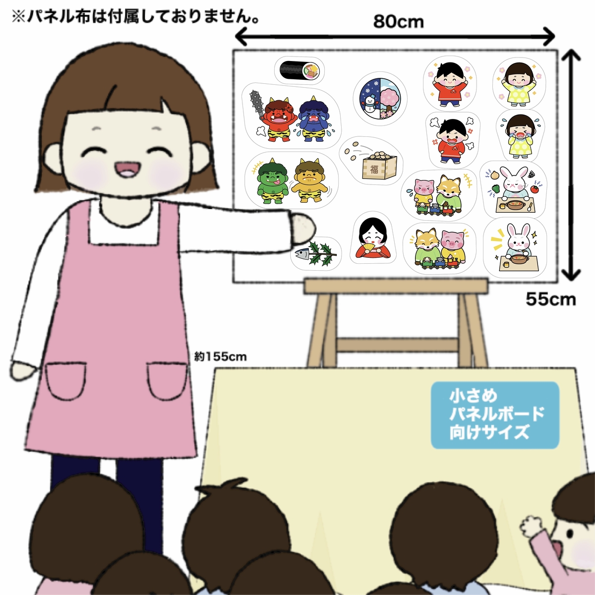 パネルシアター 節分 せつぶん Mサイズ ツイートする シェアする 販売価格 3,500円(税込み) 会員価格 (税込み) 通常価格 (税込み) 在庫 商品コード JANコード カット済み カット無し(A4サイズ6枚) 数量 - + カートに入れる カテゴリー パネルシアター